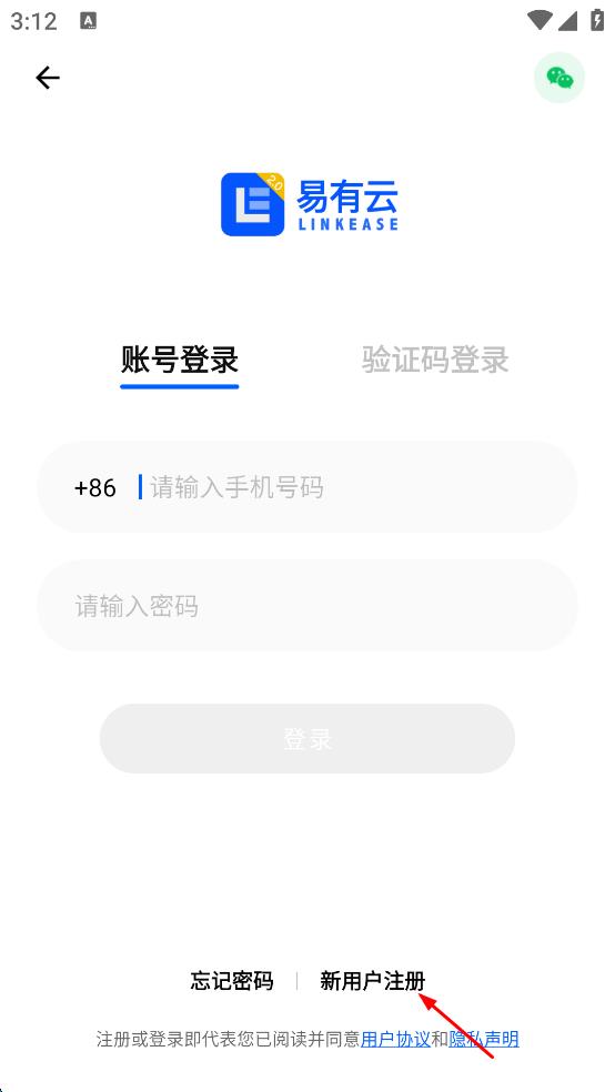 2、在個(gè)人頁面點(diǎn)擊昵稱未登錄,進(jìn)入賬號(hào)登錄界面,若沒有賬號(hào),點(diǎn)擊新用戶注冊。