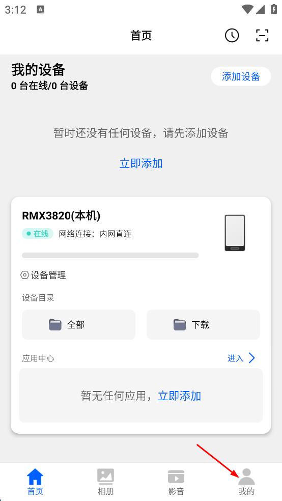 4、注冊后即可使用軟件的設(shè)備管理、相冊、影音等功能。