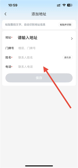 4、在添加地址頁(yè)面輸入地址、門牌號(hào)、姓名、電話等信息,即可完成地址添加操作。