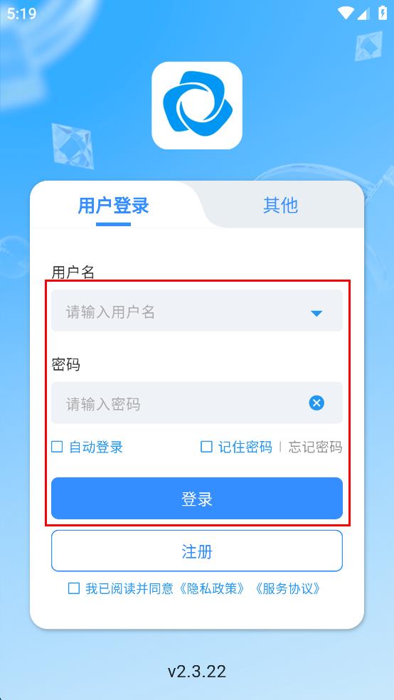 4、注冊(cè)完成后返回登錄界面,輸入用戶名和密碼,點(diǎn)擊登錄按鈕即可。