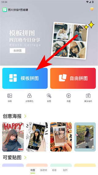 1、打開照片拼接P圖編輯應用,點擊模板拼圖選項。