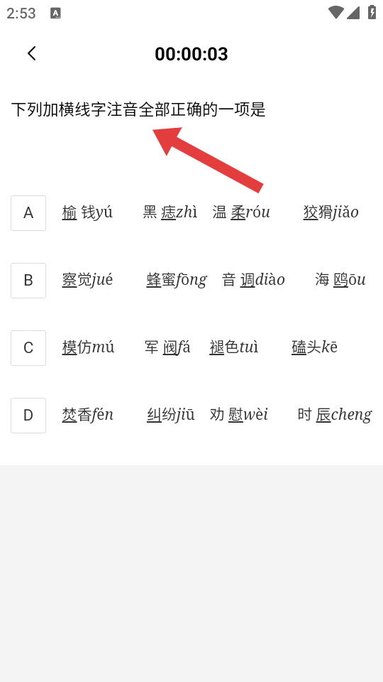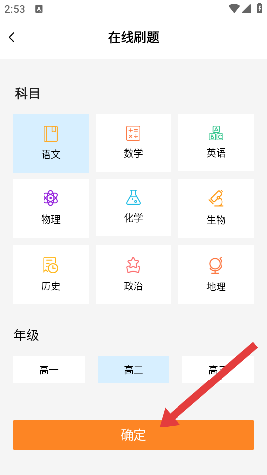 3、選擇好目標科目和年級后,點擊確定進入具體的刷題界面。
