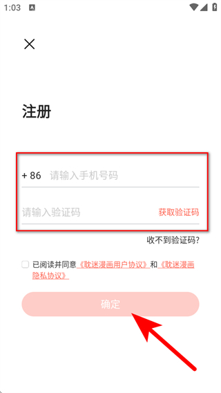 4、在注冊界面填寫手機(jī)號碼、驗(yàn)證碼,勾選同意相關(guān)協(xié)議后點(diǎn)擊確定,完成賬號注冊。