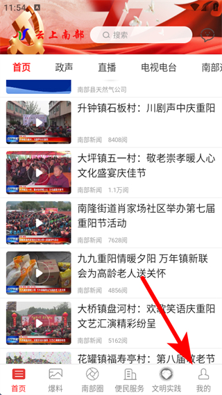 1、打開云上南部APP,點(diǎn)擊底部導(dǎo)航欄的我的,進(jìn)入個(gè)人頁面。