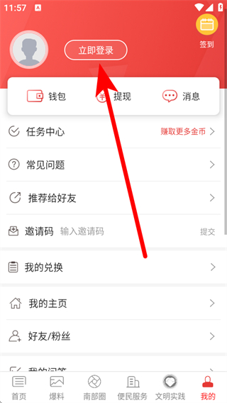 2、在個(gè)人的頁面中,點(diǎn)擊立即登錄,進(jìn)入快捷登錄的界面。