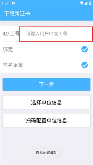 3、返回下載新證書頁(yè)面,輸入用戶ID或工號(hào)。