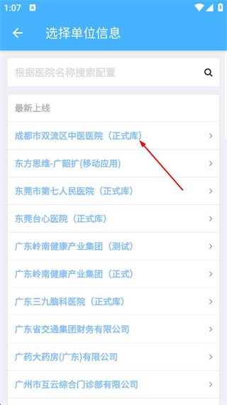 2、在選擇單位信息頁(yè)面,選擇對(duì)應(yīng)的單位。