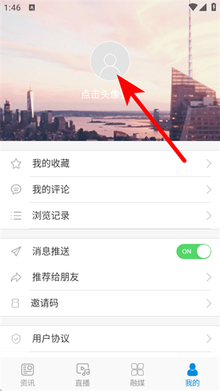 2、在個(gè)人的頁面,我們需要點(diǎn)擊頭像的區(qū)域,進(jìn)入登錄注冊界面。