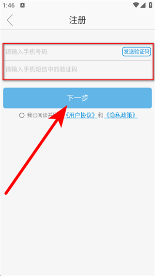 4、在頁面輸入手機(jī)號碼,獲取并填寫驗(yàn)證碼,點(diǎn)擊下一步完成操作。