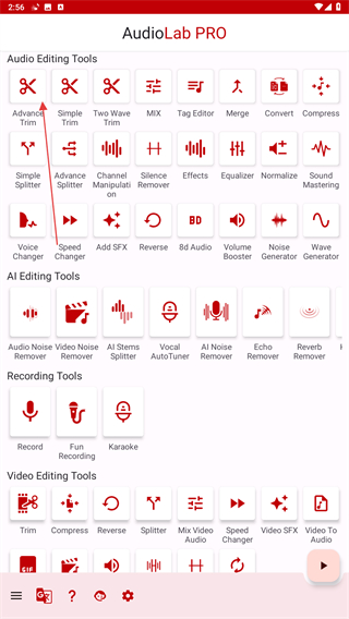 audiolab pro專業(yè)版這里能夠?qū)σ粢曨l進(jìn)行剪輯,而且是完全免費(fèi)的查詢,并且這里可以支持各種各樣的音樂(lè)格式,讓用戶能夠輕松對(duì)音視頻進(jìn)行編輯,讓你的視頻更加的炫酷,并且還可以調(diào)音哦,提供了眾多視頻的使用教程,讓不會(huì)使用的小白用戶也可以快速上手,快來(lái)下載使用吧。