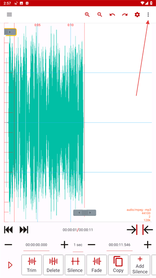 3、進(jìn)入音頻剪輯的頁(yè)面內(nèi),剪輯后點(diǎn)擊右上角三個(gè)點(diǎn)的圖標(biāo)。