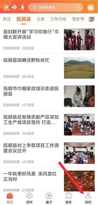 1、打開撫順縣融媒APP首頁,點(diǎn)擊底部我的,進(jìn)入個(gè)人的頁面。