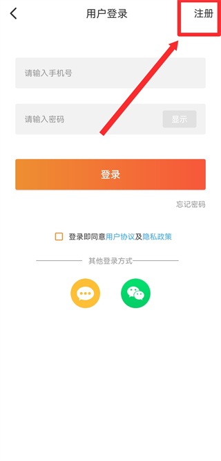 3、在用戶登錄的界面,點(diǎn)擊右上角注冊,進(jìn)入注冊的頁面。