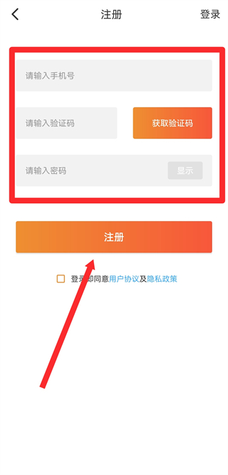 4、在頁面輸入手機(jī)號等信息點(diǎn)擊注冊,完成賬號注冊登錄的操作。