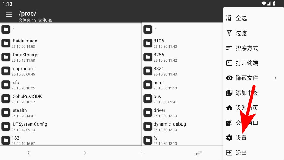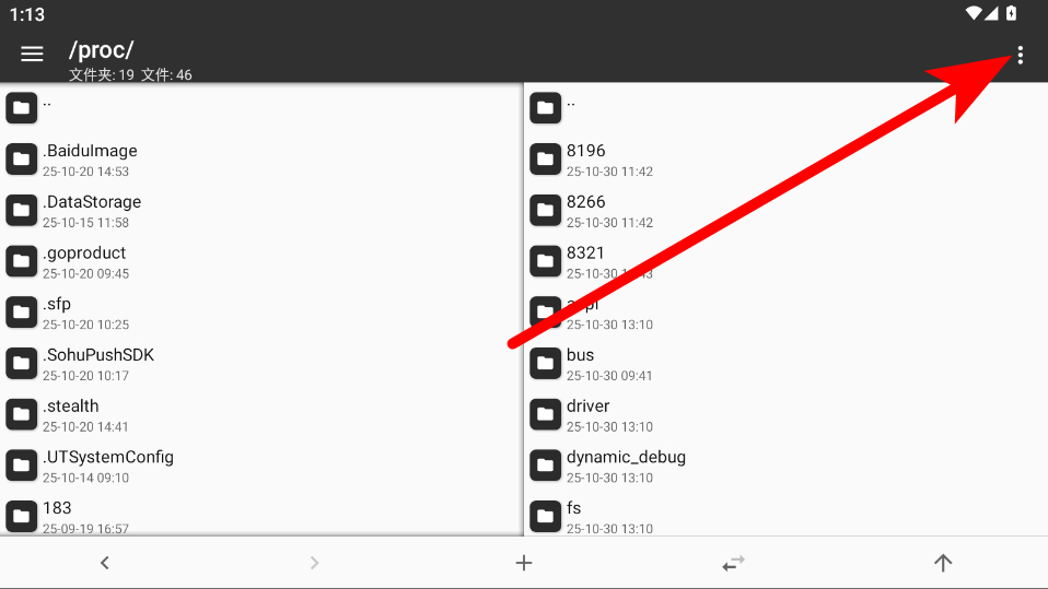 1、在MT管理器文件界面,點(diǎn)擊右上角三點(diǎn)按鈕,展開(kāi)功能菜單。