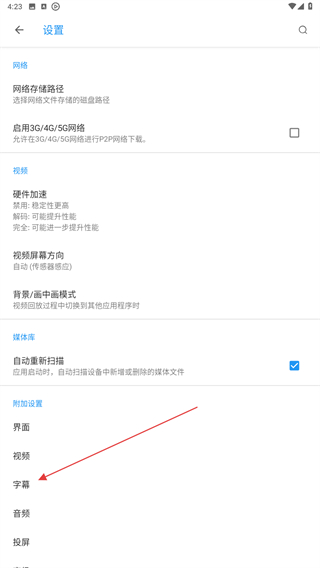3、進入設(shè)置的界面內(nèi),在附加設(shè)置下點擊字幕的按鈕。