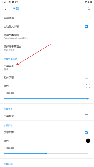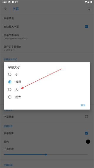 4、進入字幕的界面內(nèi),點擊字幕大小的功能按鈕。