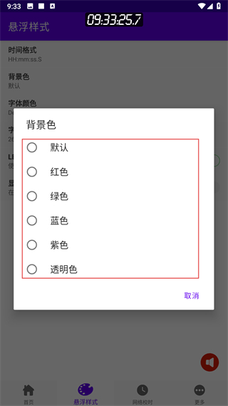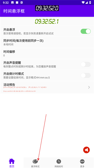 1、打開時間懸浮框應用,點擊底部的懸浮樣式選項。