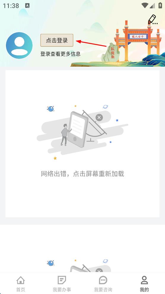 3、在個人頁面,點(diǎn)擊“點(diǎn)擊登錄”,進(jìn)入宛快辦登錄頁面。