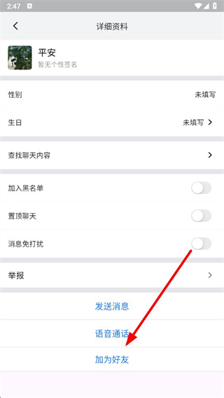 4、在詳細(xì)資料頁面點擊加為好友按鈕,即可完成加卡友操作。