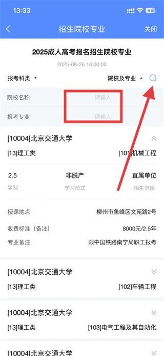 4、輸入想要查詢的院校名稱,點(diǎn)擊搜索圖標(biāo)即可查找相關(guān)信息。