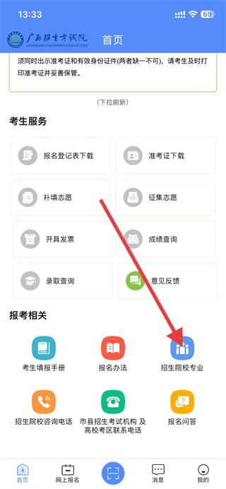 2、在報(bào)考相關(guān)板塊中,找到并點(diǎn)擊招生院校專業(yè)選項(xiàng)。