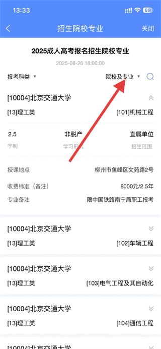 3、進(jìn)入招生院校專業(yè)頁面后,點(diǎn)擊院校及專業(yè)旁的圖標(biāo)。
