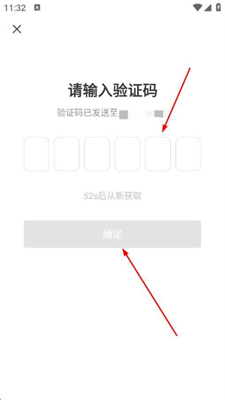 3、在輸入驗證碼頁面,填入收到的驗證碼后點擊確定,即可完成注冊并登錄。