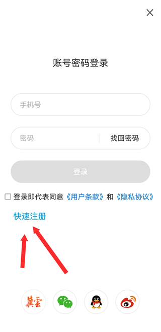 3、在賬號登錄的頁面,我們需要點擊快速注冊,進入注冊的頁面。