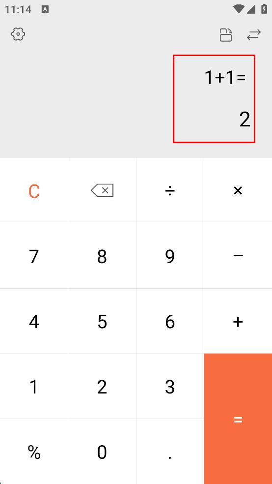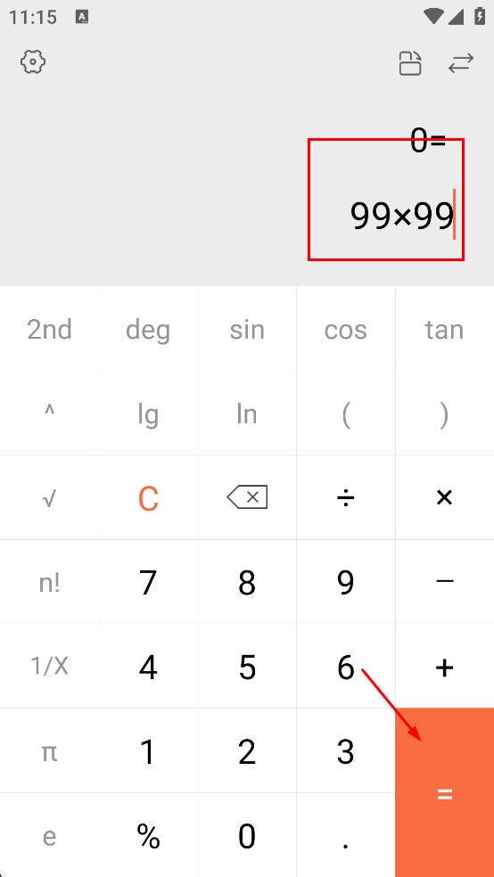 4、點擊“=”鍵,計算器會顯示出計算結(jié)果。