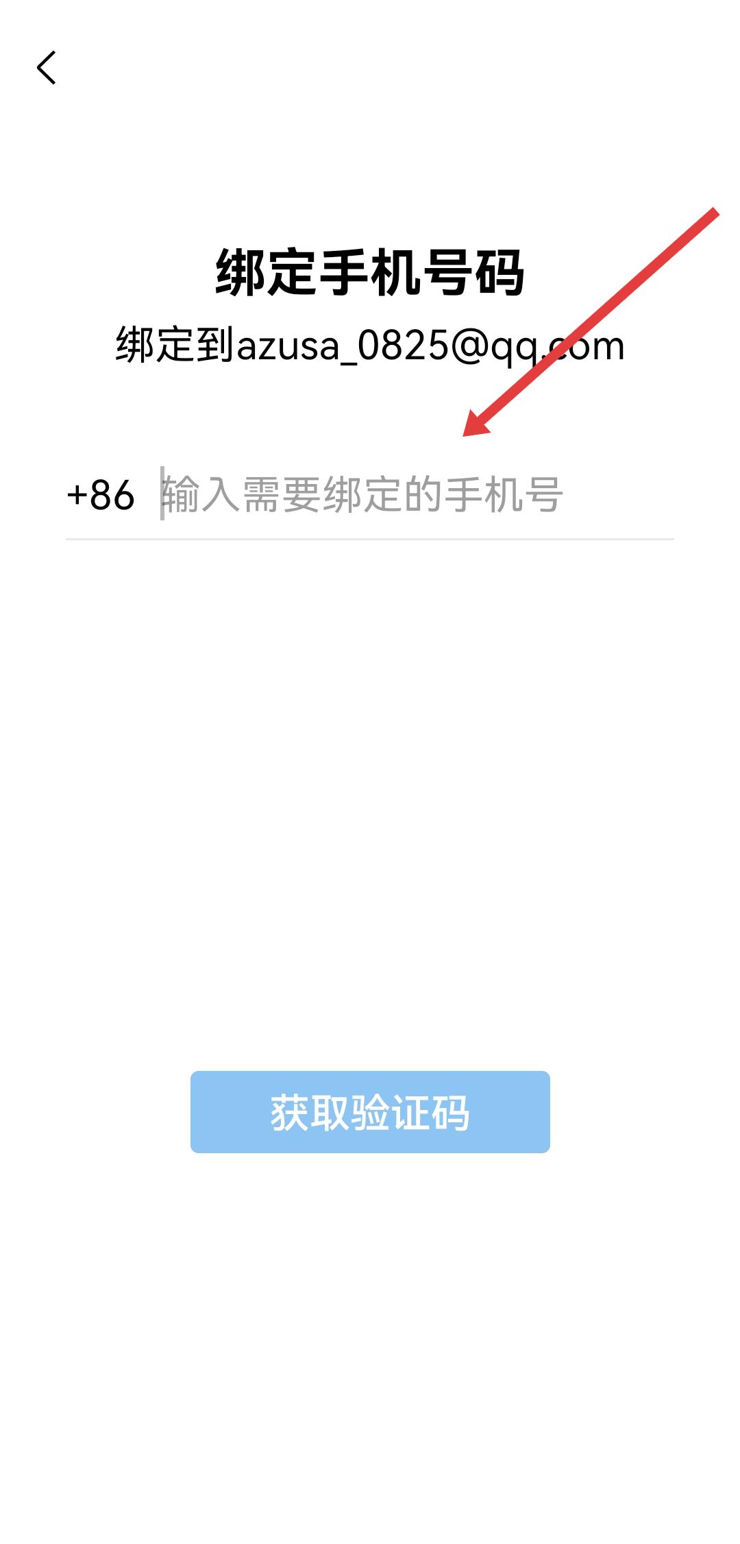 3、進入綁定手機號碼頁面,在+86輸入需要綁定的手機號輸入框中填寫手機號,然后點擊獲取驗證碼完成驗證,以便繼續(xù)完成注冊。