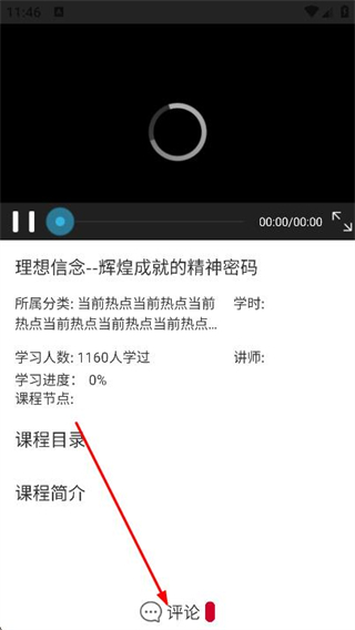 3、在課程頁(yè)面,找到并點(diǎn)擊下方的評(píng)論按鈕。