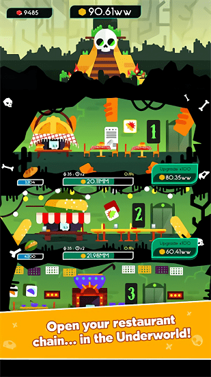死神大亨是經(jīng)營類的手機(jī)游戲,你在游戲中需要經(jīng)營你的死神店鋪,收買靈魂甚至是生命,你可以擴(kuò)建很多新的建筑來讓你的速度變快,游戲玩起來還是很有意思的,精美的畫面配合上搞怪的死神,讓你可以一直玩下去,是不是感覺很不錯(cuò),那就快來玩一玩吧!