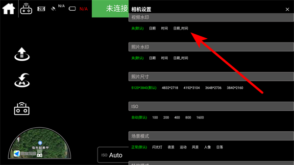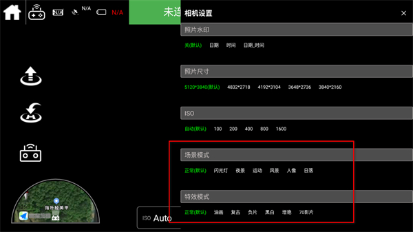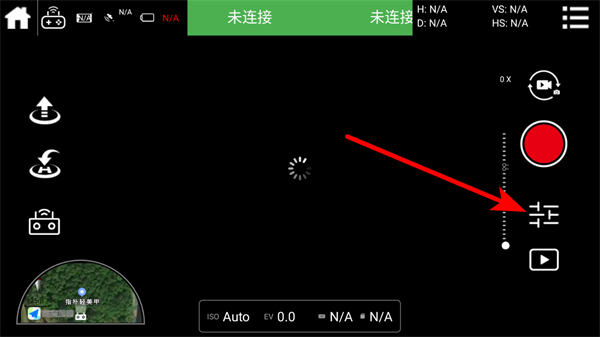 1.進(jìn)入C-Fly2無(wú)人機(jī)應(yīng)用的飛行界面后,點(diǎn)擊右側(cè)的相機(jī)設(shè)置按鈕。