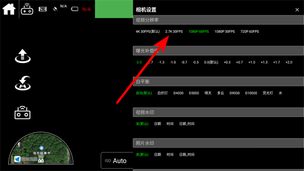 2.在相機(jī)設(shè)置界面中,可選擇視頻分辨率,如2.7K30FPS等。