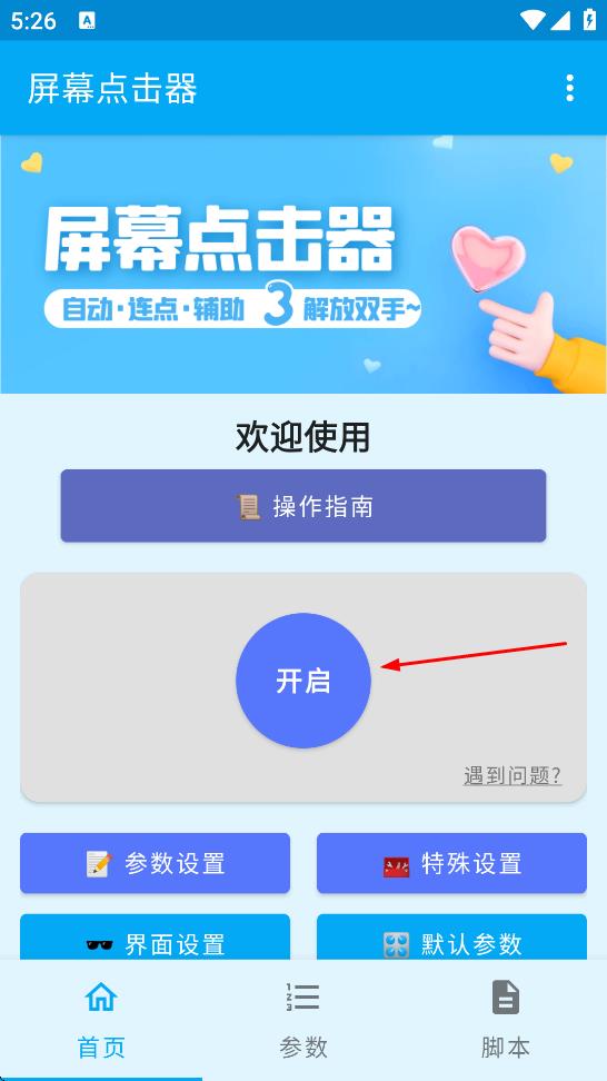 2、權(quán)限授予完成后,點擊“開啟”按鈕,啟動屏幕點擊器功能。