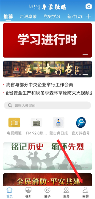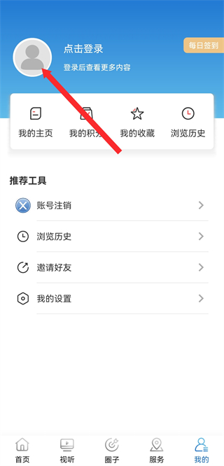 1、打開阜蒙融媒app,點擊底部我的,在個人頁面點擊點擊登錄。