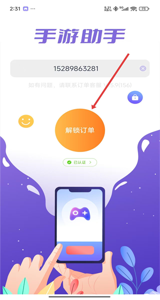 4、返回“手游助手”頁面點擊“解鎖訂單”,完成訂單解鎖流程。