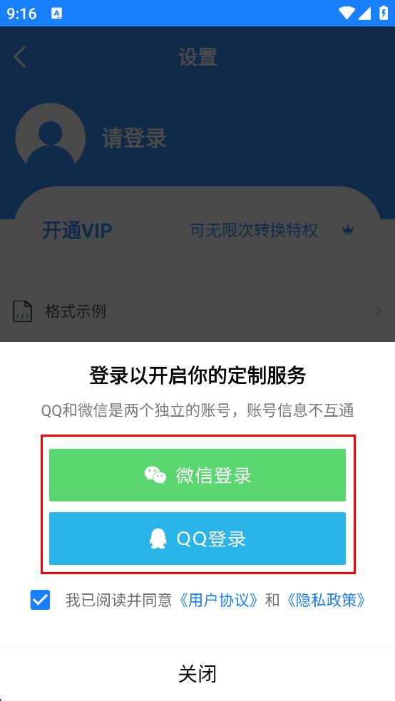 3、在登錄界面,勾選同意下方的用戶協(xié)議以及隱私政策。