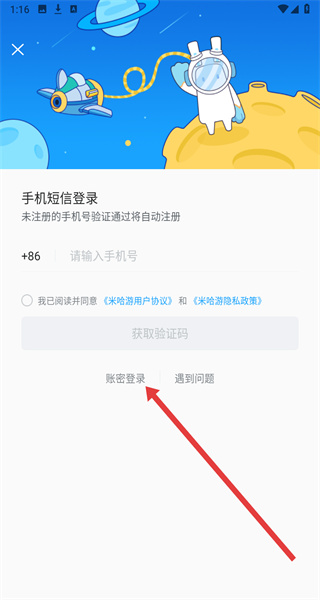 2、在進(jìn)入到登錄頁(yè)面時(shí),可以點(diǎn)擊賬密登錄按鈕,切換使用賬號(hào)和密碼的方式登錄。