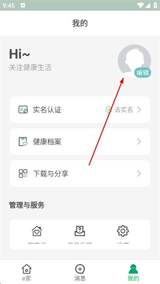1、打開(kāi)健康e家APP,點(diǎn)擊導(dǎo)航欄我的。
