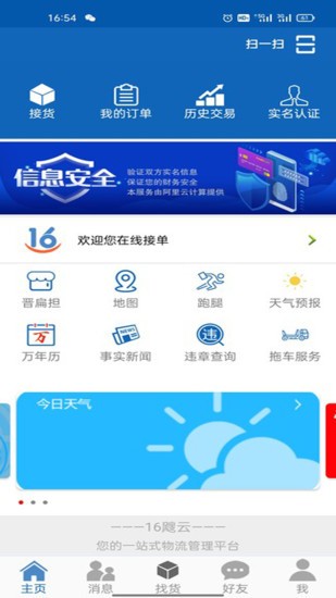 16颼云司機端是為司機師傅提供的物流運輸平臺,功能十分豐富,擁有海量貨源信息,可以輕松找貨,一鍵查看,快速接單,還支持地圖導(dǎo)航出行,提供違章查詢、拖車服務(wù)、天氣預(yù)報、萬年歷、跑腿等服務(wù),歷史交易一目了然,實時記錄,方便又好用!