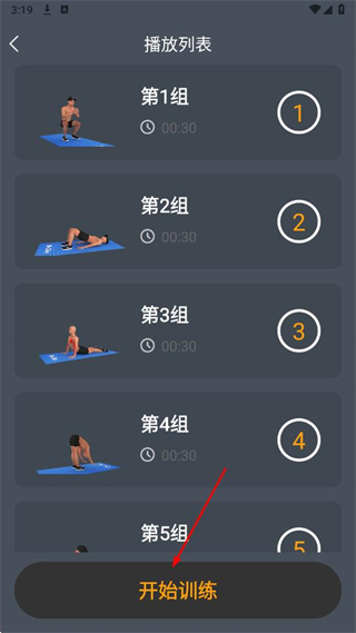 3、在播放列表頁面,點(diǎn)擊開始訓(xùn)練按鈕。