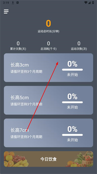 1、打開增高運(yùn)動(dòng)APP,選擇長(zhǎng)高3cm的訓(xùn)練項(xiàng)目。