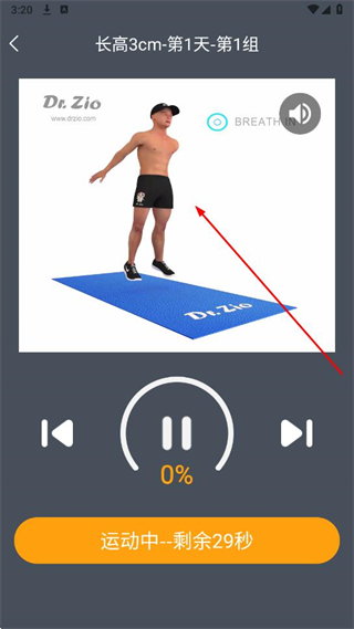 4、按照APP中演示的動(dòng)作,跟隨節(jié)奏完成每組訓(xùn)練,直至所有組訓(xùn)練結(jié)束。