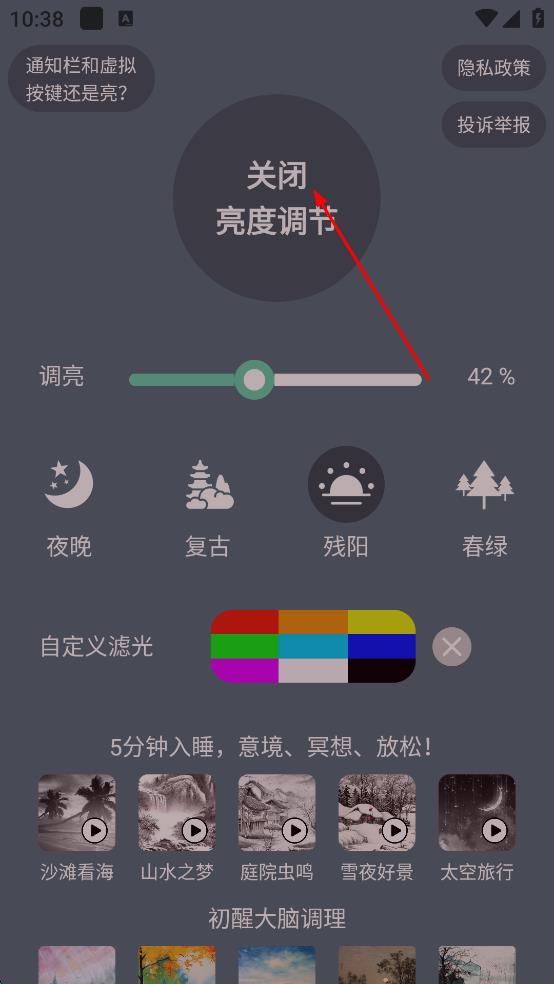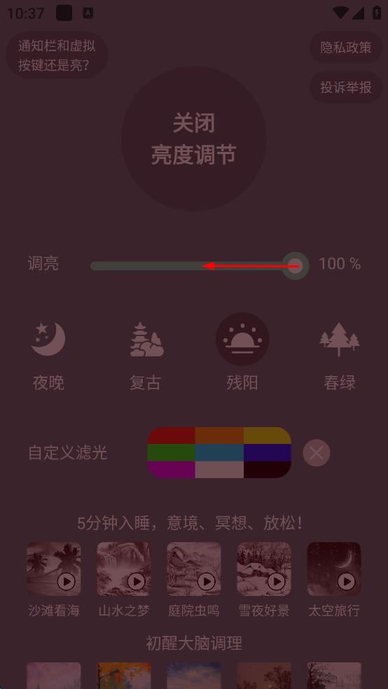 1.可以精準(zhǔn)調(diào)節(jié)手機(jī)亮度的輕量級(jí)實(shí)用工具,針對(duì)不同的環(huán)境,設(shè)置不同的護(hù)眼模式,操作簡(jiǎn)單,設(shè)置快捷,多種模式隨心選擇,同時(shí)還能自定義模式,個(gè)性化設(shè)置更加貼心。