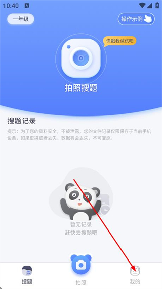 1、打開拍照搜題輔導(dǎo),點(diǎn)擊底部導(dǎo)航欄的我的選項(xiàng)。