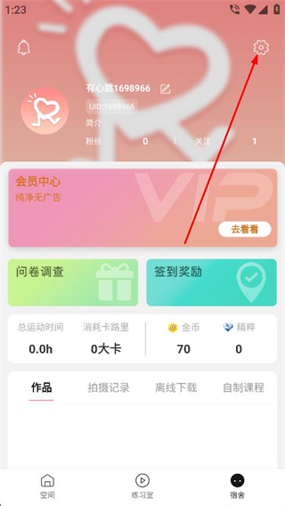 2、在宿舍頁面中,找到并點擊右上角的設(shè)置圖標。