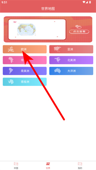 2、在世界地圖頁面,點(diǎn)擊歐洲選項(xiàng),進(jìn)入歐洲地圖頁面。