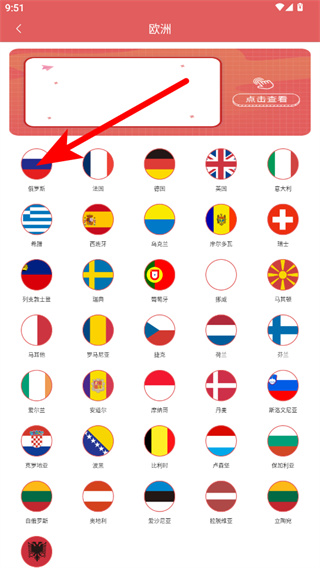 3、在歐洲地圖頁面,點(diǎn)擊俄羅斯選項(xiàng),進(jìn)入俄羅斯地圖頁面。